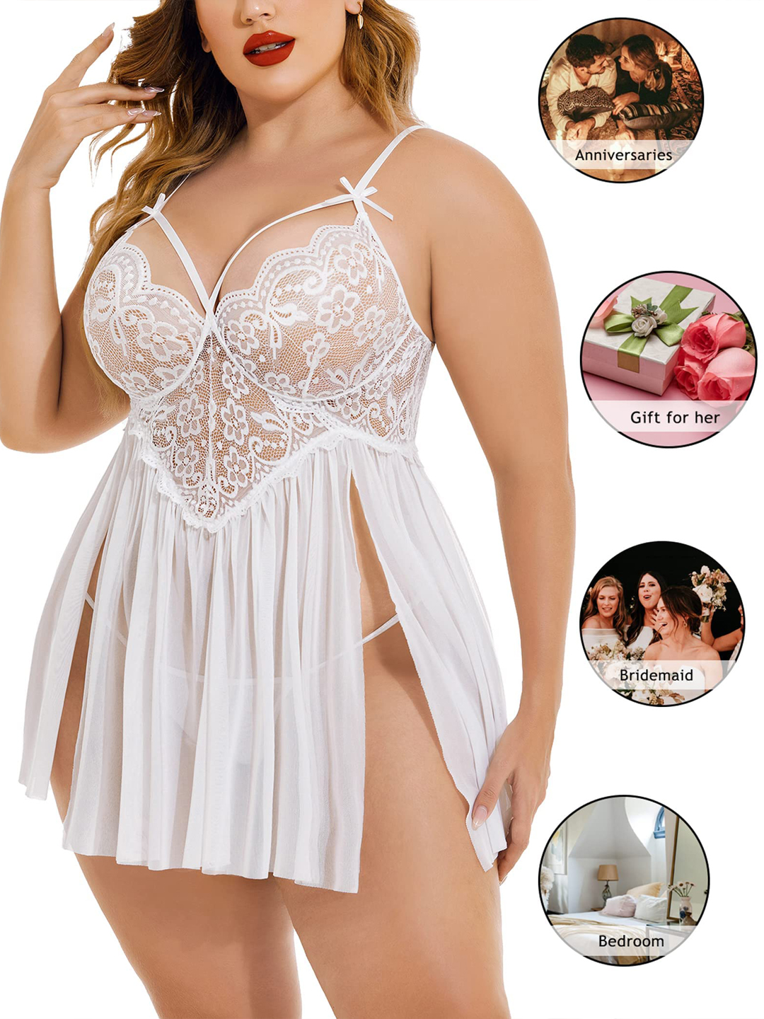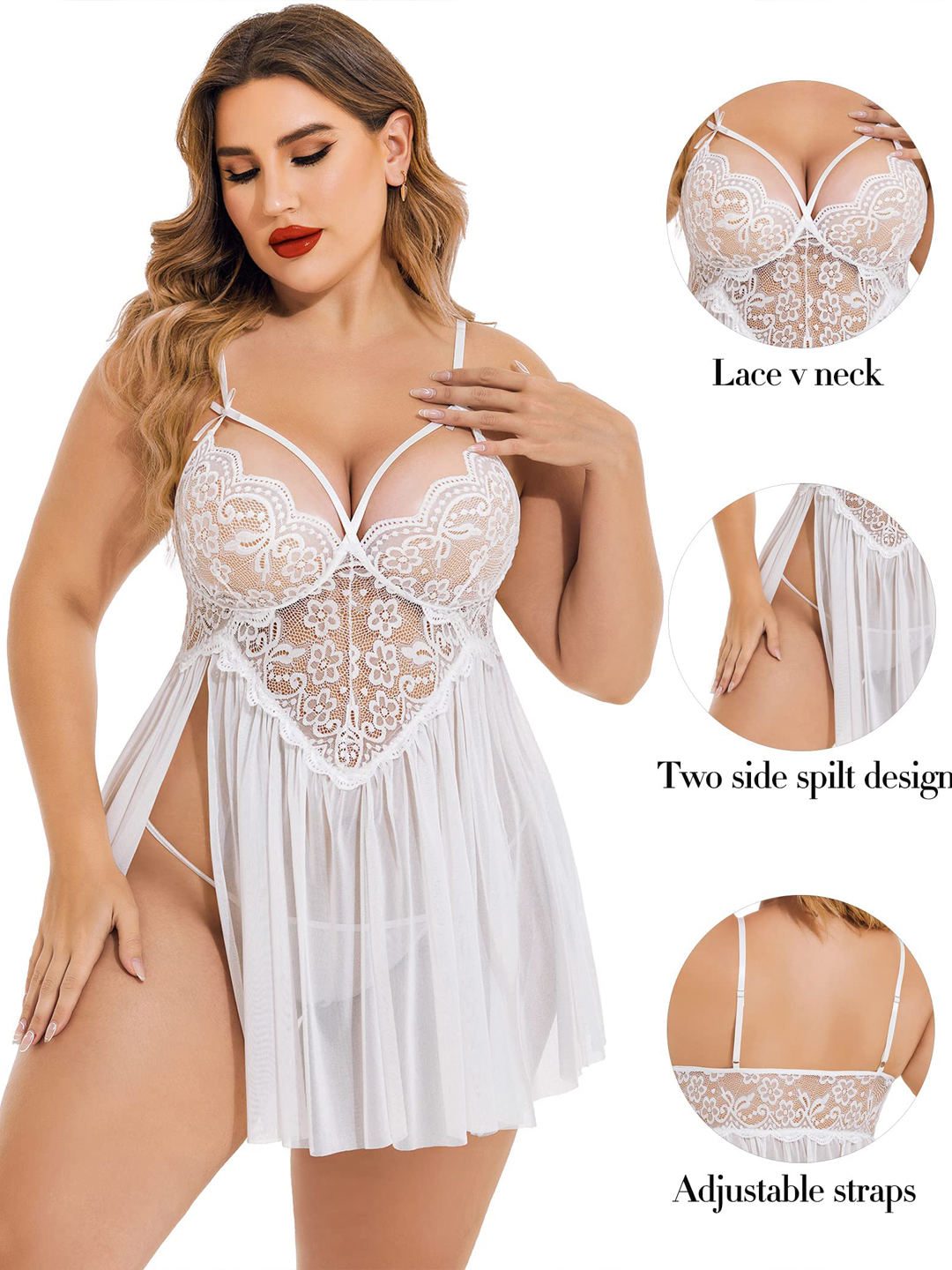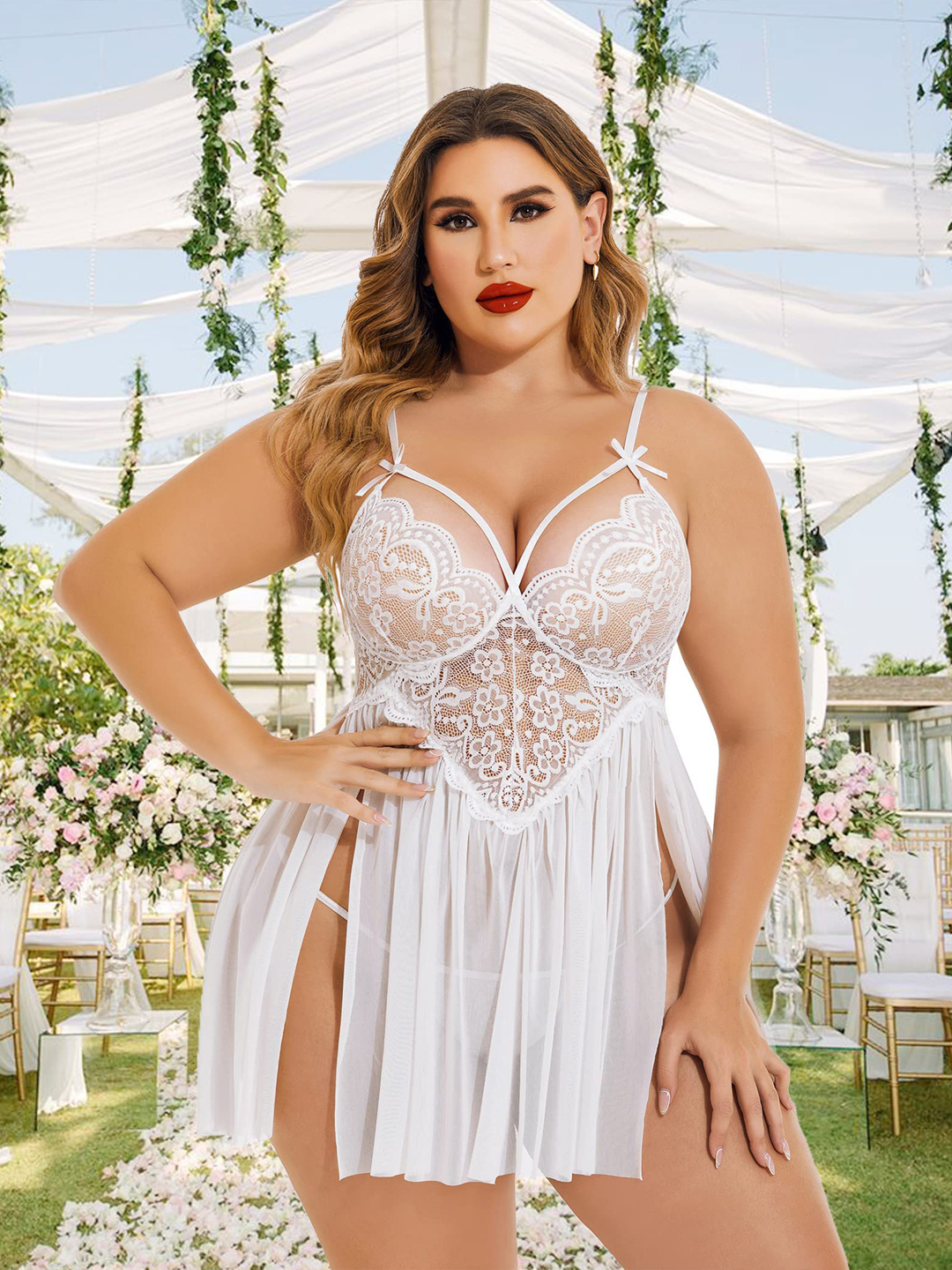 Features: Scalloped lace, adjustable straps, semi-sheer design, full sets